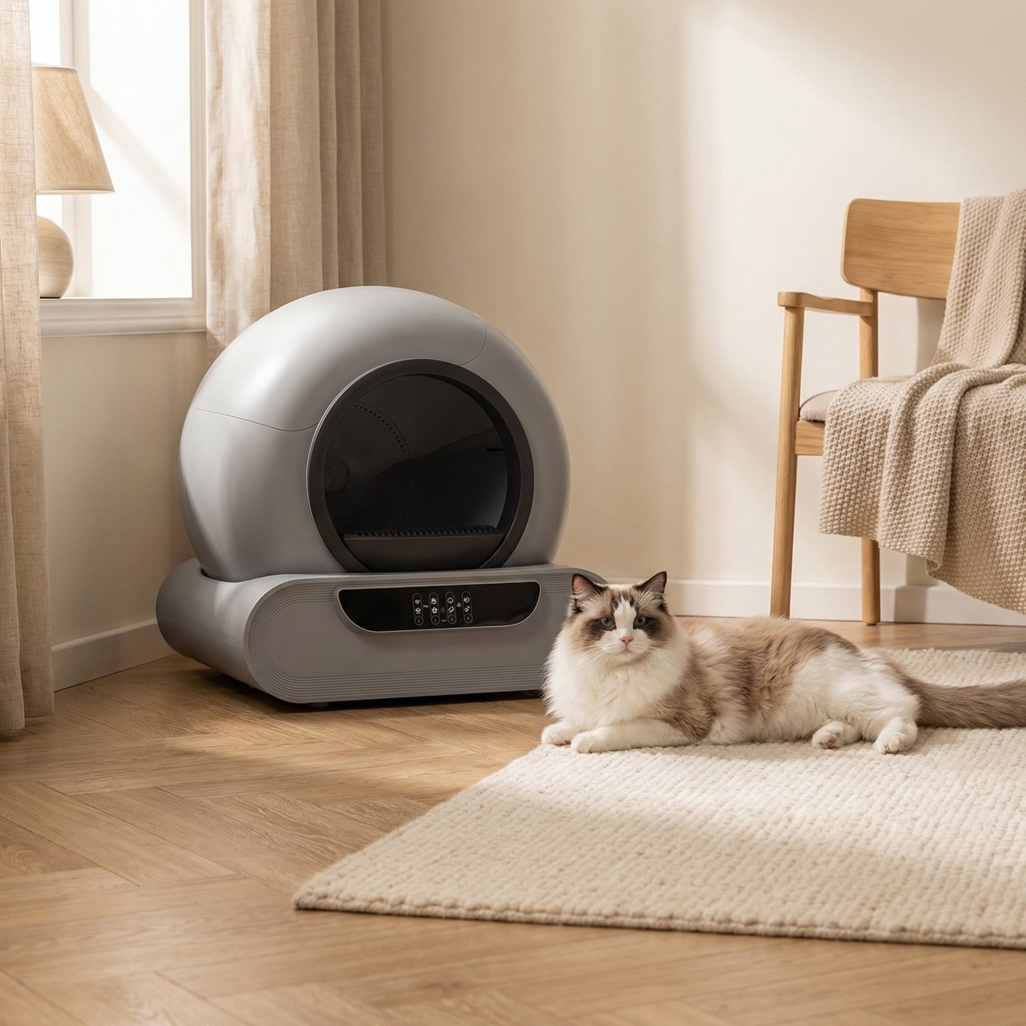 Whisper-quiet motor. Cleans while you sleep. Your cat won't wake you. Neither will the box.